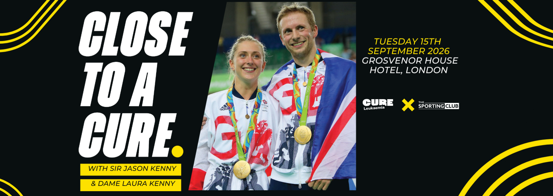 On Tuesday, 15th September 2026, Cure Leukaemia will host its third annual Close To A Cure event in partnership with The Sporting Club, featuring the most decorated duo in British Olympic history – Sir Jason Kenny and Dame Laura Kenny.