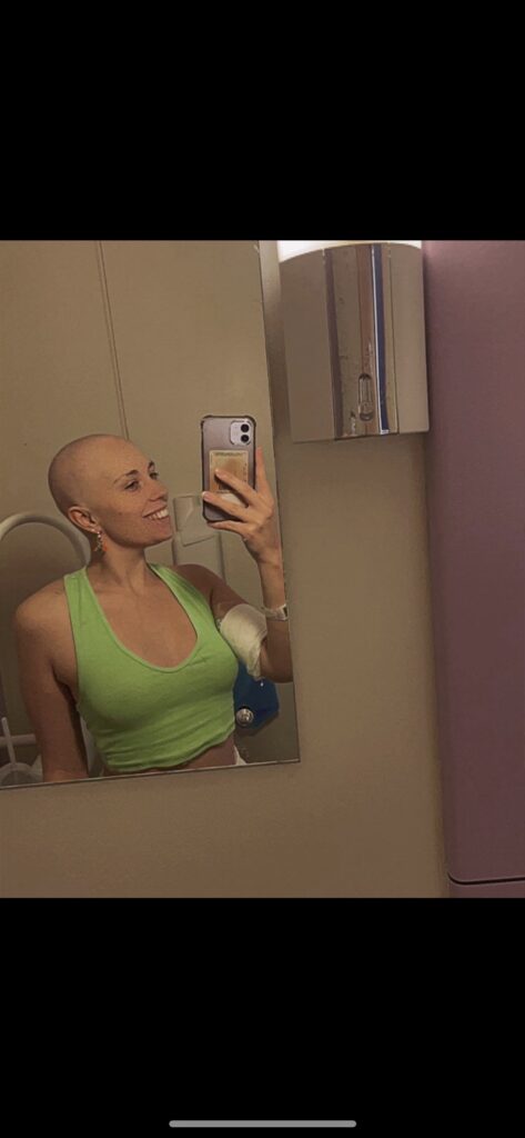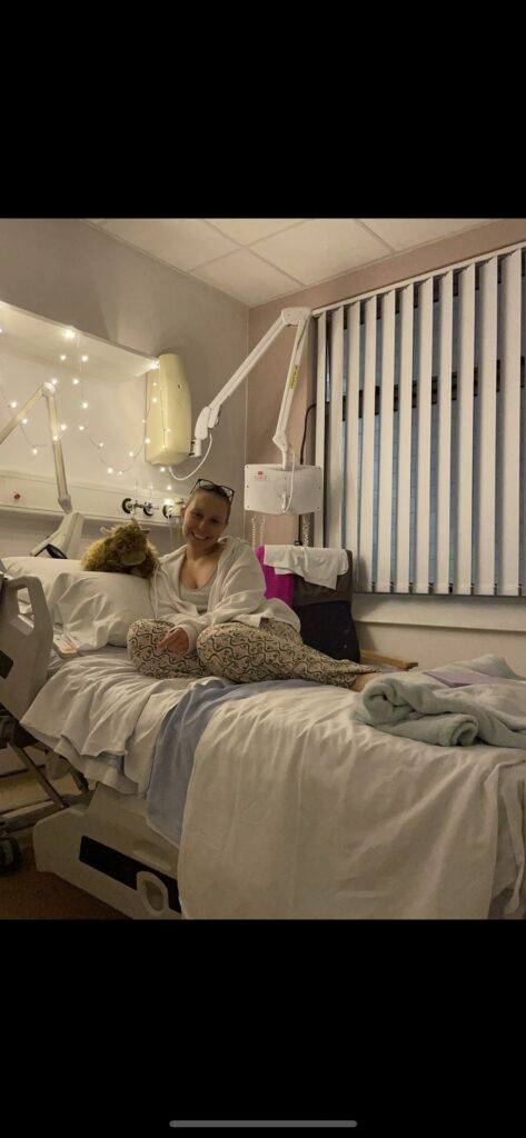 That same evening, Maddie received a call advising her to go to A&E in Reading. At this point, she still didn’t fully understand the seriousness of her condition. She spent the night in the Acute Medical Unit and, at 6am the next morning, was told she had Acute Myeloid Leukaemia (AML), with 80% blast cells in her blood.